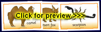 A set of printable posters featuring wildlife that can be found in deserts around the world.