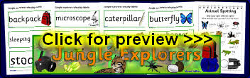 A set of resources for your classroom ‘Jungle Explorers’ role-play area. It includes a banner, labels with pictures, explorer badges, animal observation form and sketch pad template.
