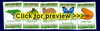 A brilliant set of 40 A4-sized pictures with accompanying words showing rainforest plants, animals, insects, food and people. Ideal for use on classroom displays or to aid topic-related discussion.