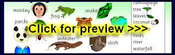 A set of word and picture cards linked to a topic on ‘The Jungle’.