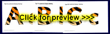 A PDF document with 26 alphabet letters (upper and lowercase) textured with a tiger fur pattern. These are great for printing and cutting out for use on displays.