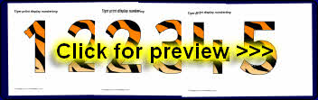 A PDF document with numerals 0-9 and mathematical symbols with a tiger print pattern. These are great for printing out as display numbering or for classroom number lines.