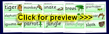 A set of word and picture cards linked to a topic on ‘The Jungle’.