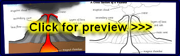 A simple printable sheet showing a cross section of a typical active volcano.