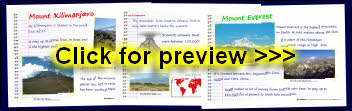 A useful set of ‘scrapbook’ visual aids with information about 6 of the highest mountains in the world.