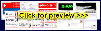 A useful set of printables for your hospital role-play area. Includes signs, labels, prescription form, patient details form, ID cards and more.