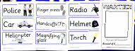 A very useful group of printable resources for use in a Police Station role-play are. Includes a re-sizable banner image and printable wanted posters. Also included is a set of labels with pictures plus a ‘make a disguise’ set where children can decorate the faces with various disguises.