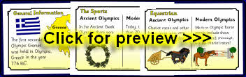 A set of posters with information about the Ancient Olympics compared to the Modern Olympic Games.