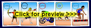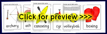 A set of simple flash cards featuring the main Olympic sports.