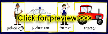 A set of printable cards for a matching activity where children can match the workers to vehicles associated with their job.