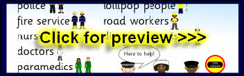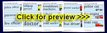 A set of cards where pupils can match the people who help us to their tools. Fire officers to hose and ladder, caretakers to the broom, paramedics to the ambulance, road workers to the pneumatic drill and more! Great to promote topic-related discussion.