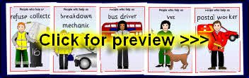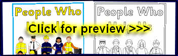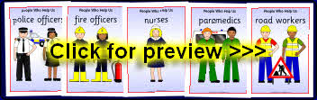 An additional set of 8 posters showing more people who help us. Designed to accompany our original People who help us posters.