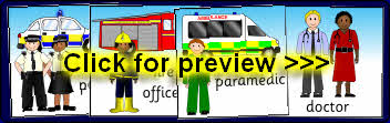 A set of printable word cards with words and pictures linked to people who help us in everyday life.
