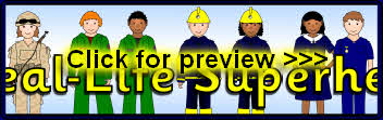 A colourful banner for a classroom topic display about ‘Real-life superheroes’.