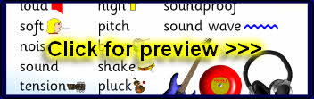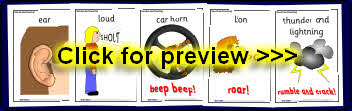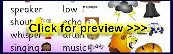 A set of very useful visual aids linked to the topic of ‘Sound and Hearing’. The file consists of 18 A4-sized printable sheets showing various sound sources and the sounds that they make, together with other words and pictures linked to sound - such as ‘echo’, ‘ear’, ‘high and low’ and ‘loud and quiet’.