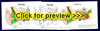 A set of diagrams of the ear. Includes a labelled versions for class discussion, as well as worksheets for pupils to label themselves (colour and black and white).