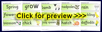 A set of printable word cards with accompanying pictures linked to the season of Spring.