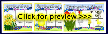 A printable bingo game where children match spring picture cards to the words or pictures on their boards. Also includes picture boards to create a simpler picture matching game.
