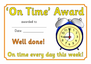 Printable certificates to reward children for arriving at school on time each week/day.