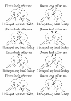 A set of printable stickers (8 per A4 page) designed to be printed on Avery Labels J8165. Present to children for a variety of minor bumps and injuries, each featuring a fun ‘bump’ character. Black and white for children to colour themselves.