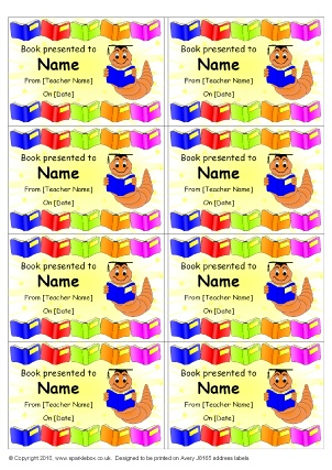 A set of editable book gift tags sticker templates (8 stickers per A4 page) designed to be printed on Avery Labels J8165. Add your own text to stickers and stick inside the cover of your book presents.
