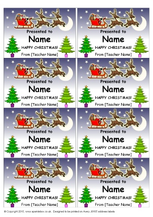 A set of editable Christmas-themed gift tags sticker templates (8 stickers per A4 page) designed to be printed on Avery Labels J8165. Add your own text to stickers and stick to your Christmas gifts.