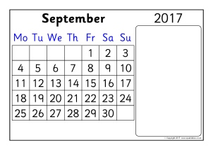 Simple printable calendars with a September 2017 to July 2018 academic year to view. Three different sizes included. Great for use on pupil’s art and craft calendars for the school year.