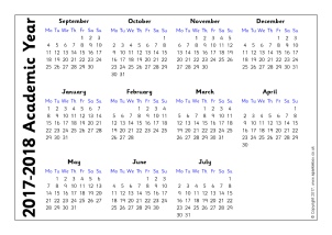 Academic 2017-2018 Year Calendar – Month to View (SB12014)