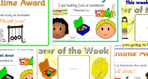 A set of colourful reward charts for children who need encouraging to eat at mealtimes. Includes charts with space for 5 or 10 stickers and a space to write what the child's reward is.