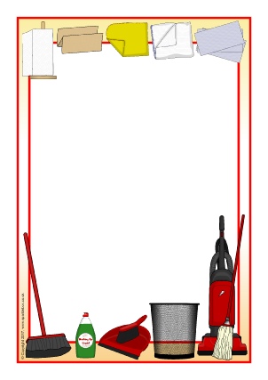 Editable A4 page borders in landscape and portrait featuring cleaning and tidying up items. Includes editable Microsoft Word templates as well as resizable JPG images.
