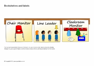 Create a fun classroom jobs display with a bookshelf theme. Set includes printable ‘shelves’ with labels showing different pupil responsibilities, together with editable book spines to add children’s names. Place the books on the shelf to show each child’s job for the week.
