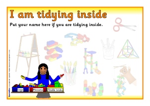 Three printable posters plus editable name cards where pupils can move their name onto the ‘Inside’ or ‘Outside’ sheet depending on where they are tidying.