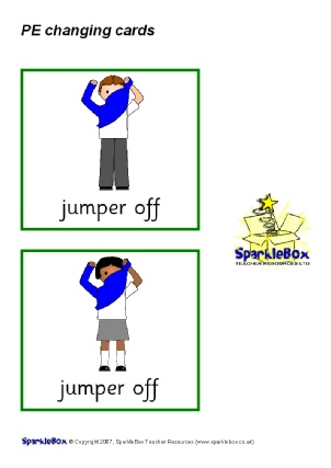 A set of cards to show the steps of getting changed into and out of PE kit. Includes both boy and girl cards. Green cards show steps for getting into PE kit, and red cards show steps for getting changed back. Ideal for use with children who have difficulty changing independently.