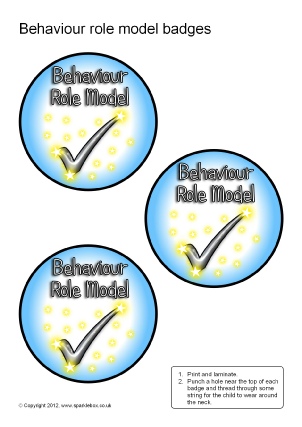 Simple printable badges for to present to children who are following classroom rules and can act as role models for other class members. Laminate, cut out and thread a string for the child to hang around the their neck.