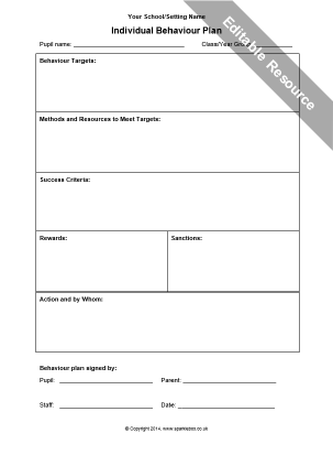 A simple editable Individual Behaviour Plan template for Microsoft Word.