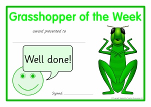 Grasshopper-themed reward certificates to accompany the grasshopper target sheets.