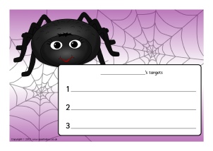 Printable editable posters for your spider-themed target board. Type targets or rules into the speech bubbles or as a simple list. Use these editable posters as visual aids in all sorts of contexts.