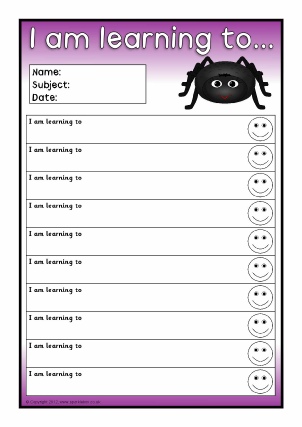 Editable target sheets (for Microsoft Word) with the text ‘I am learning to...’, ‘My next goal is...’ and ‘I can...’. Each sheet has space for 10 targets.