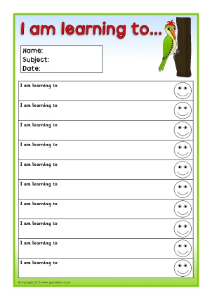 Editable target sheets (for Microsoft Word) with the text ‘I am learning to...’, ‘My next goal is...’ and ‘I can...’. Each sheet has space for 10 targets.