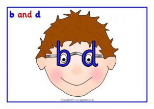 Simple A4-sized posters showing ‘b’ and ‘d’ the correct way round in a pictorial way