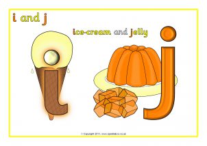 A simple A4-sized poster showing ‘i’ and ‘j’ the correct way round in a pictorial way