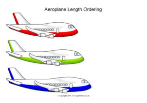 A set of different-sized aeroplanes that can be cut out and used for size ordering activities