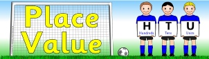 Two banners with a footballer theme, demonstrating place value in a fun visual way. Includes HTO/HTU and ThHTO/ThHTU.