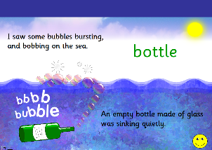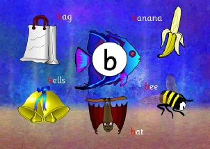 An interactive PowerPoint activity where children collect fish as they burst the bubbles containing things beginning with ‘b’.