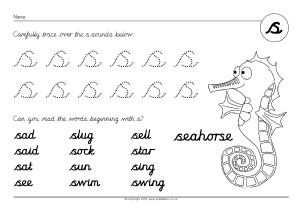 A set of 4 worksheets linked to the Sea of Sounds, designed to aid with recognition, formation and pencil control.