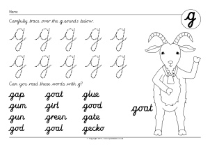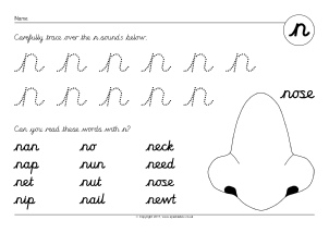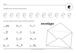 Simple printable worksheets where children can practise writing the phoneme and reading simple words with that phoneme. Each sheet also includes a picture to colour.