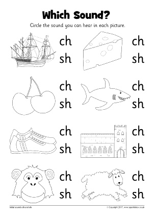 Simple worksheets where children circle the initial or final sound ch or sh for each picture.