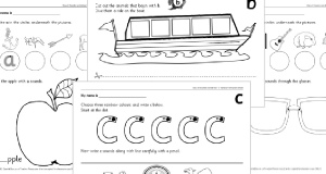 A set of worksheets where pupils colour the pictures linked to each alphabet sound.