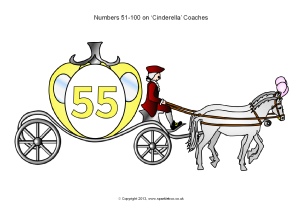 The numbers from 51 to 100 presented on coloured pumpkin ‘Cinderella’-style coaches. An extension of our Numbers 0-50 on ‘Cinderella’ coaches resource.
