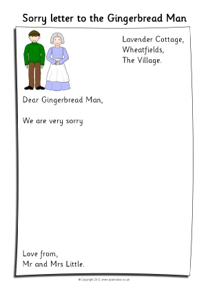 Sorry letter writing templates from the characters in the story of The Gingerbread Man.